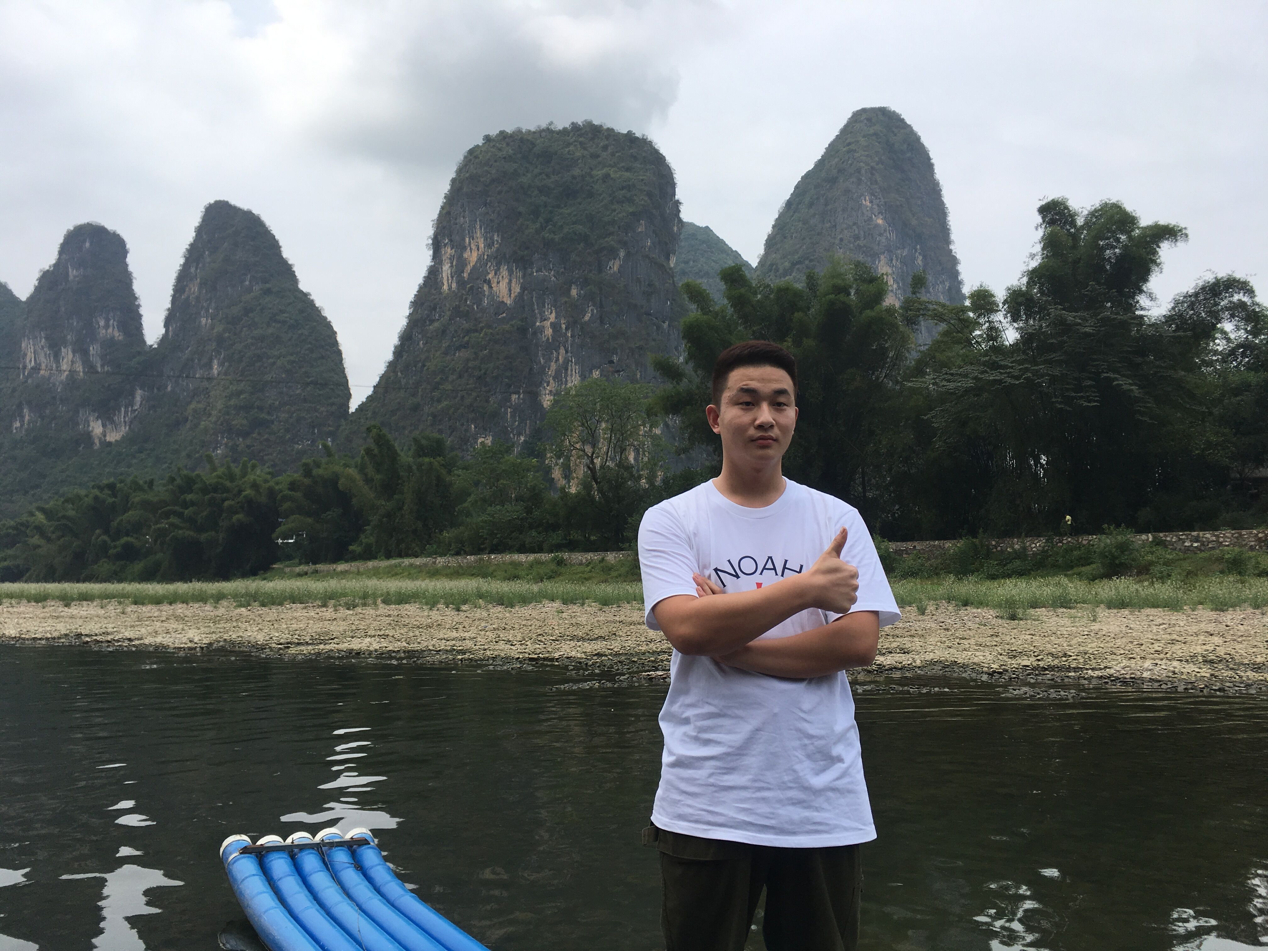 中餐后,我們繼續赴漓江最美古鎮,擁有1400多年歷史的興坪古鎮,搭乘游船游覽5A【漓江風光--興坪佳境】(游覽約1.5小時),興坪漓江段是漓江最精華,風景最美的一段。兩岸群峰競秀,碧水縈回,欣賞風景如畫的興坪佳境、20元人民幣 背景圖案、黃布倒影等漓江絕色景觀,親身感受"人在天上走,船在畫中游"的神奇仙境。這個上午我們都沉醉在了漓江的懷抱上不能自拔,正如小學讀到一篇文章: “漓江的水真靜啊,靜得讓你感覺不到它在流動;漓江的水真清啊,清得可以看見江底的沙石;漓江的水真綠啊,綠得仿佛那是一塊無瑕的翡翠..."
